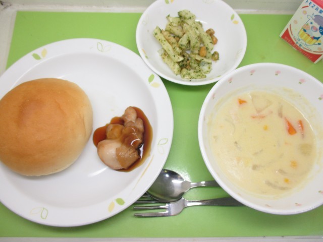セルフ照り焼きチキンバーガー・コーンクリームスープ・青のりポテト