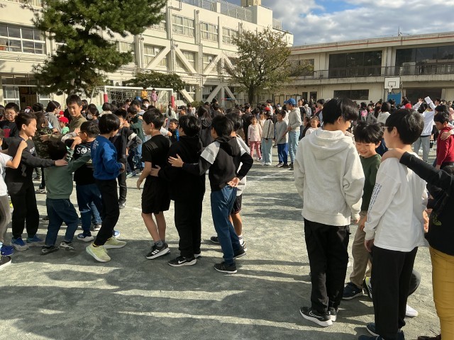 児童集会の様子です。今日の内容はじゃんけん列車。