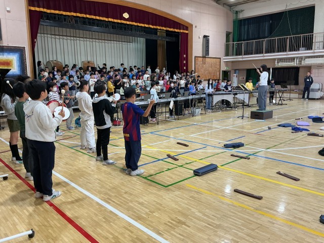 太鼓の音色が耳に心地良さを覚えます。八木節はリズムを取るのがとても難しい曲です。みんなが主役になって演奏をし、一つの曲を作り上げているところです。