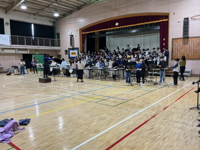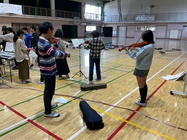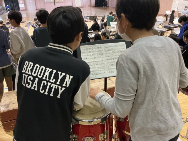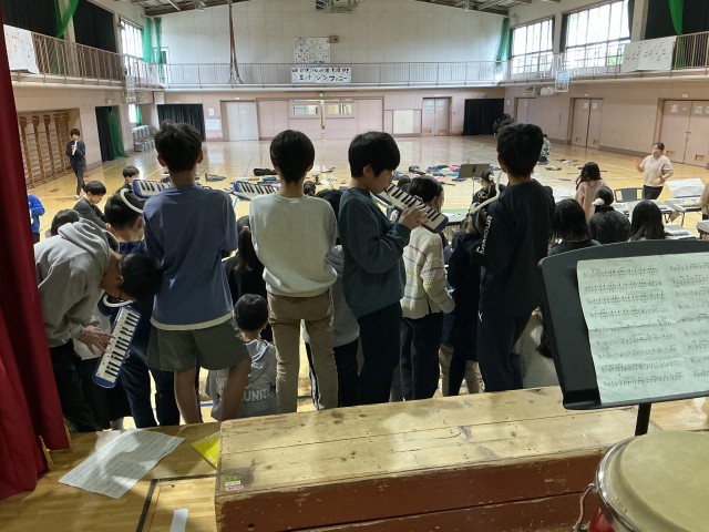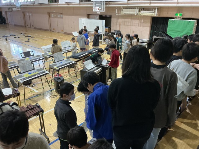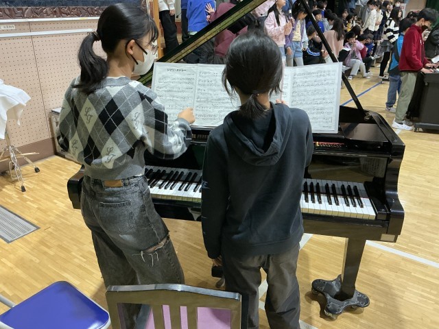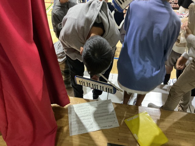 6年生にとって最初で最後の音楽会の合奏はジブリメドレー。一つの演奏の中で次々と曲が変化し、一部の児童は楽器も変わります。楽譜を確認しながら練習を重ねています。