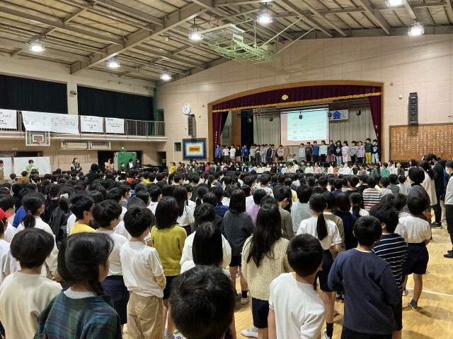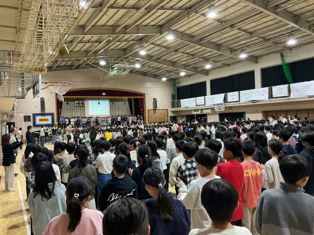 今日の音楽朝会は音楽会本番を目前に全校練習をしました。700人の子どもたちが一斉に行うボディーパーカッションはなかなかの迫力です。練習は本番のように本番は練習のように!必ずや素晴らしい歌と合奏を奏でてくれることでしょう。