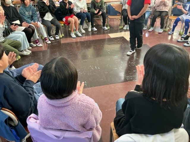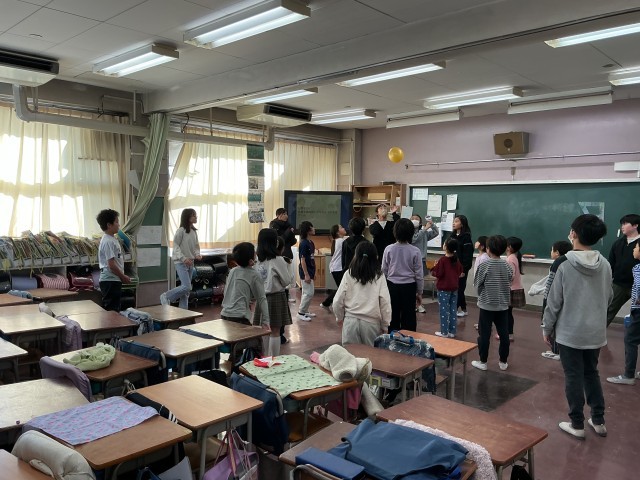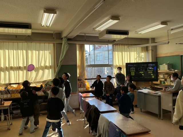 2学期最後のたてわり班活動が行われました。今日は風船を使った班が多く見受けられました。「震源地はどこだ?!」ゲームでは「当てる人、あっち向いてくれないかなあ・・」と震源地役の人の心の声が聞こえてくるようでした。