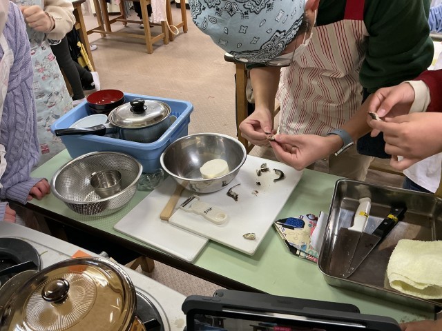 調理実習でご飯とお味噌汁を作りました。煮干しの頭とハラワタを取るのは初めて。どれがハラワタ?ご飯は本当にうまく炊けているのかな?自分で作る料理は格別おいしく感じますね。