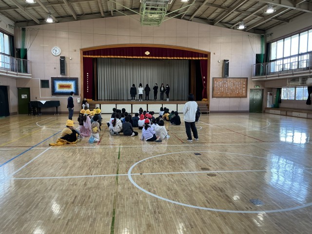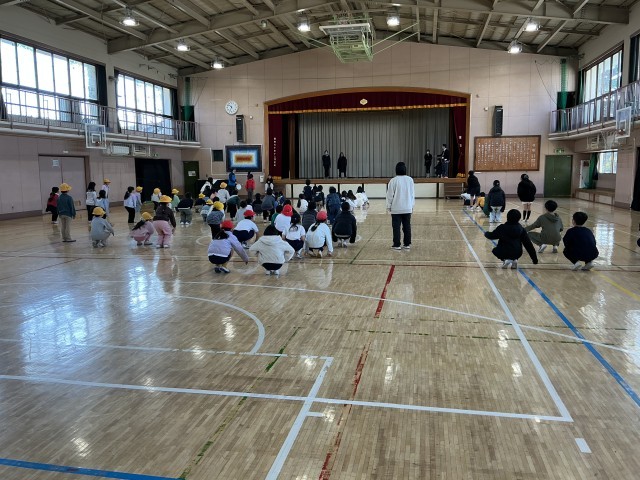 中休みを利用して運動委員と楽しい時間を過ごしました。今日は「言うこと一緒、やること逆」と言う頭も体も使う運動を行いました。例えば、運動委員が「右」と言ったら左に飛び、「下」と言ったらジャンプします。短い時間ながらも充実したひと時を過ごすことができました。