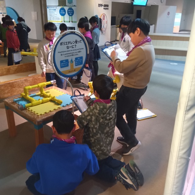 ガスの科学館に着き、エネルギーについて学んでいます。