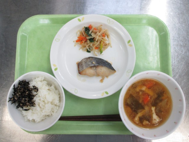 ごはん・牛乳・ひじきのふりかけ・さわらの塩こうじ焼き・ごまあえ・みそ汁