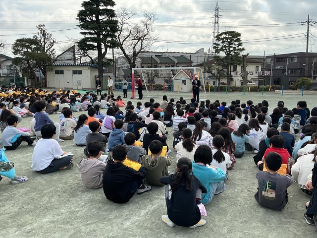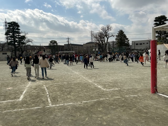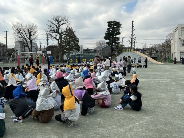 今年度最後の避難訓練が行われました。今回は予告なしで休み時間に地震発生という想定でした。休み時間の児童は校庭、教室、廊下、トイレなど様々な場所に分散しています。担任の先生がいなくても一人一人が自ら考えて行動することができました。校長先生からは東日本大震災についてのお話があり、避難訓練の大切さを改めて伝えました。