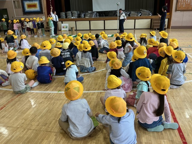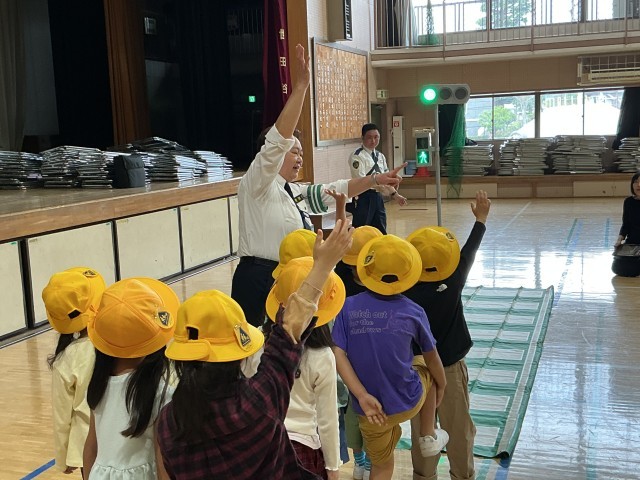 4月15日、玉川警察署のご指導をいただき1年生の交通安全教室が行われました。信号が青でも左右を十分確認してから渡ること、横断歩道を歩くこと、チカチカしたら渡らないなど大切なことをたくさん教えていただきました。登下校時はもちろん、これからは放課後に公園やお友だちの家に遊びに行く機会が増えてきます。その時は、ぜひ、交通安全教室で習ったことを思い出して欲しいです。毎日元気な「ただいま!」が言えるように。