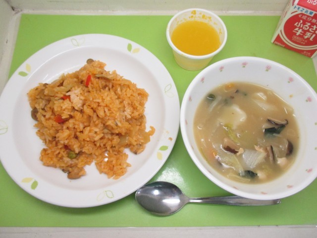 チキンライス・牛乳・もちもちスープ・みかんゼリー