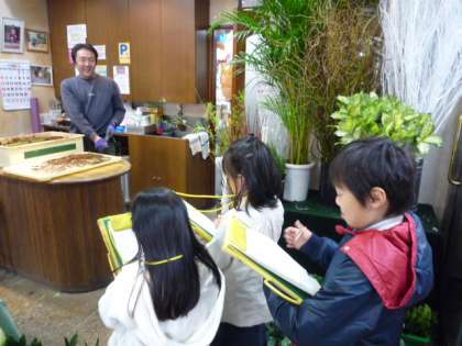 お店の人にあいさつするとき、誰が何というのか尻込みするグループもありましたが、ほとんどのグループは、しっかりとした話しぶりであいさつすることができました。質問の答えも、ワークシートに素早く書きとめることができている子がたくさんいました。