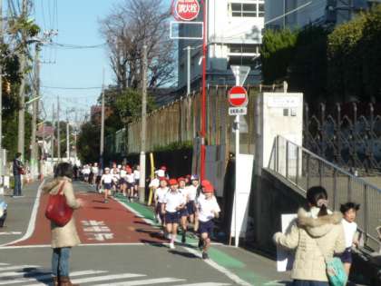 好天に恵まれ、2校時に3年生のマラソン大会が行われました。たくさんの保護者のお手伝いや応援を受けて、男女に分かれて学校の周りを2周しました。