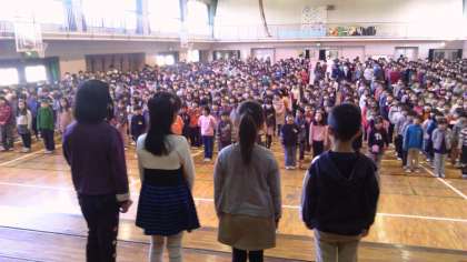 2学期の終業式が、体育館で行われました。校長先生の話の後、ラブリバー多摩川こども絵画展の表彰、先日のマラソン大会の表彰、2学期の給食完食回数の多いクラスの発表と表彰が行われました。喫食回数72回中、72回。パーフェクトの学級が、何と5クラスあり、表彰されました。2の2,4の4,5の1,5の4,6の1の5クラスです。他にも2位が1の1の71回。3位が1の2の68回と1年生のがんばりも光りました。