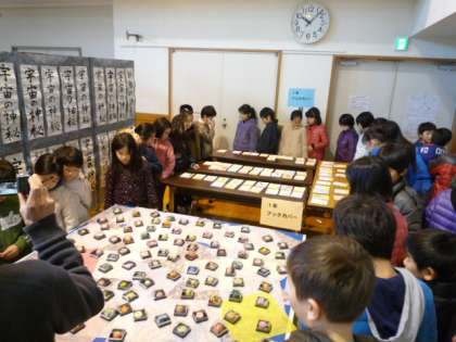 2校時に、4年生が玉川中学校の格技室や渡り廊下で開催されている「学び舎ギャラリー」の見学に出かけました。玉川小と中町小からは、4,5,6年の工作クラブの子どもたちが出展しています。玉川中学校は、1〜3年生の学習発表会の作品展示です。子どもたちにとって、初めて見る中学生の工作や家庭科・技術科の作品、書道や新聞など、驚きながら感動しながら観ていました。今度の土曜日には、3年生が見学します。