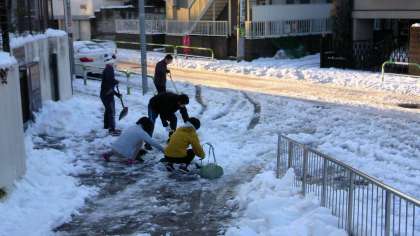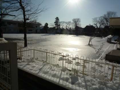 10年ぶりの大雪で、学校や地域が真っ白に変身。でも、次の朝は、大変です。今朝は、先生方や主事さんがた総動員で、学校の正門・西門、犬走り、学校の周りの道路の雪かきに追われました。朝、学校に向かう三角公園あたりの道路には、雪で走行できなくなった放置された車が見られるほど、大量の雪に見舞われました。校庭は、朝の光を浴びて雪がもう溶け出しそうですが、でも、2,3日は使えそうにありません。明日の朝も、まだ除雪されていない歩道もたくさんありそうです。登校に気を付けるよう、一声かけていただければ幸いです。5年生も、給食室のある中庭の雪かき作業をボランティアしてくれ、給食の食材の搬入車を助けてくれていました。5年生、ありがとうございました。