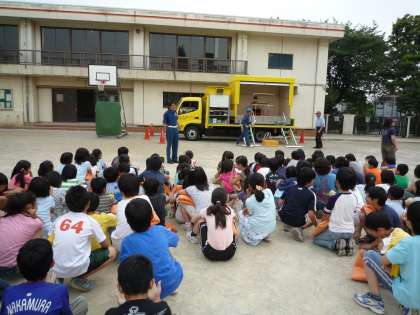 今日の3時間目、震度6を想定した避難訓練が行なわれました。1年生にとっては2回目の訓練で、どんな感じになるか心配していましたが、口をしっかり閉じて、とても上手に避難することができました。揺れがきたらすぐに机の下にもぐって身を守ること、外に飛び出さないことなどの注意をしました。4年生は、その後起震車体験を一人一人が行ないました。