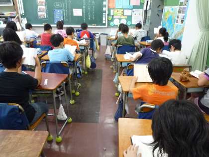 朝読書の効能は、いろいろなところで言われていることですが、学校の教育課程の中に取り入れようとすると、なかなか思うように組み込めないのが、現状です。今年、本校では、職員朝会の時間の短縮化を図り、朝読書の時間を取れるように工夫しました。火曜日とも金曜日の週2回の取り組みですが、それぞれの学級で少しずつ定着した感があります。お話バスケットの方々も学級での読み聞かせの時間として協力いただいております。