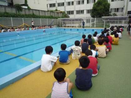 3時間目は思ったより水温と気温が上がらず、水泳を楽しみにしていた3年生ですが、写真のように普段着のままでプール開きをすることになってしまいました。次回はいいお天気になるといいですね。
