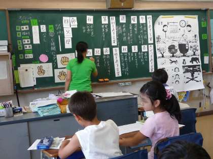 今日の4校時に、3年3組阿河学級で、2年次研修の授業研究を行ないました。教科書の挿絵を拡大し、絵を手がかりに意味の上で仲間になる感じを読んだり、書いたりする活動をしたりする授業でした。子どもたちの手の挙げ方がとてもきれいにまっすぐ伸びて気持ちよかったです。授業に真剣に臨んでいる日頃の様子もうかがえました。