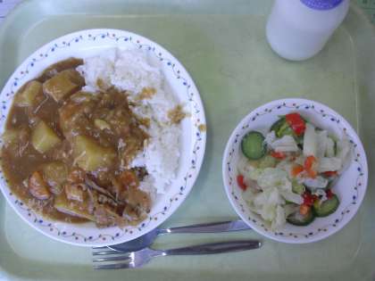 チキンカレーライス 牛乳 福神漬け カラフルサラダ