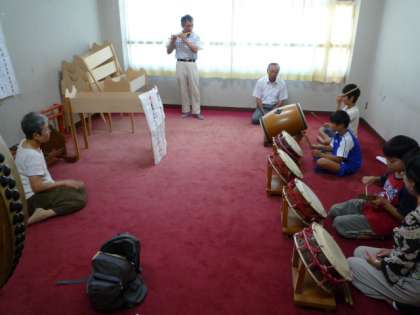 今日の「おはやしの音」講座では、お囃子に使う横笛の音出しにも挑戦していました。すぐには音は出ないのですが、しばらくすると、子どもたちの力はすごいもので、音が出るようになって、子どもたちも喜んでいました。今日で2曲を演奏することができるようになり、明日は、BOPの子どもたちにお披露目になります。集合写真を撮って、明日の気分を盛り上げました。