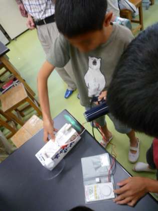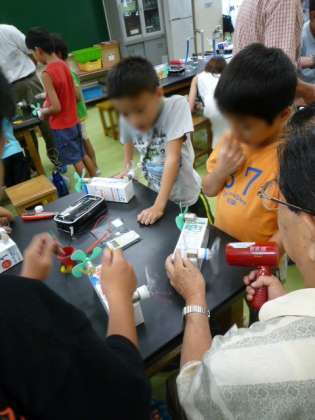 今年の理科実験教室もクラリカ(蔵前理科教室ふしぎ不思議)の方々を講師に迎えて、「風力発電」講座を行いました。3年生以上の25名の参加者で、電磁石の原理など少し難しいお話もありましたが、しっかり聞いて、実験装置作りに励みました。教室ではなかなかできない楽しい実験器具や装置があり、子どもたちも目を輝かせて参加していました。明日は、ギシギシプロペラという実験もやります。