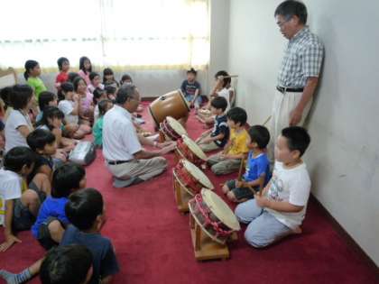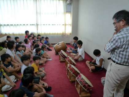 月曜日から5日間続けて練習してきたお囃子。子どもたちは、普段なかなか生活の中で耳慣れないお囃子の音に、集中して練習し、見事に2曲演奏できるようになったことは、本当に立派でした。今日は、BOP の子どもたちが30人くらい聴きに来てくれて、発表会を行いました。聴いている子どもたちからたくさんの拍手をもらって、3人とも満足気でした。ご指導いただきました上野毛お囃子連の方々、5日間ご指導いただきまして、本当にありがとうございました。こどもたちにとっては貴重な体験ができた5日間だったと思います。BOPの先生方のお計らいで、8月28日(金)1時30分からのBOP子ども祭りのときの前ふりをお囃子の演奏がつとめることになりました。お時間のある方、ぜひ聴きに来てください。