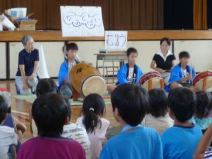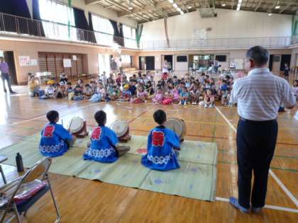 今日の2時から、体育館で「BOP夏祭り」が行われました。そのオープニングに、カルチャースクールで1週間学んだ「おはやしの音」講座の子どもたちが、見事なお囃子を披露してくれました。BOPの子どもたちも真剣にその演奏を聴いて、終わった後、大きな拍手をしてくれました。3人の子どもたちもよく頑張ってくれました。