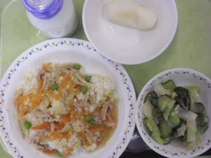 あんかけチャーハン 牛乳 野菜の中華和え 梨