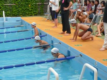 午後から、6年生にとって最後となる水泳記録会が行われました。小学校の時期に自分がどれだけの記録を持っていたのか、記念になる記録会です。100メートル自由形からスタートし、最後は4クラス対抗の50メートル×4と25メートル×8で締めくくりました。どの子も1つ以上の種目にエントリーし、自分の記録の更新に挑みました。あいにくコンディションがいいほうではなかったのですが、6年生として頑張っていました。