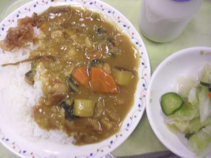 秋味のカレーライス 牛乳 福神漬け 野菜の甘酢かけ