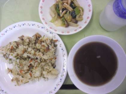 鶏肉とごぼうのご飯 牛乳 煮びたし 白玉しるこ