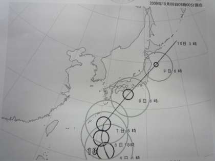 気象庁の天気予報によりますと、10月8日(木)に大型台風18号が関東地方に接近するそうです。そこで、玉川小学校では、8日午前7時の時点で、児童の登校・下校について学校が判断して、学級の電話連絡網と緊急メール、ホームページを使って、お知らせすることにしました。当日は、学校からの連絡を受けとるまでは、児童を登校させないようにしてください。