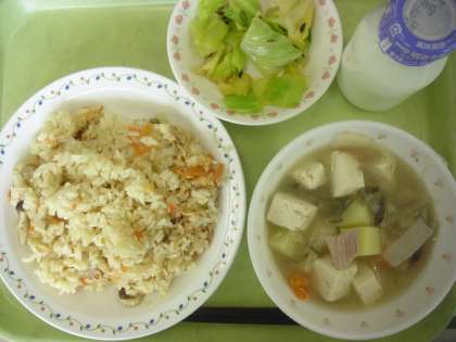 きのこご飯 牛乳 豚汁 キャベツの塩昆布和え