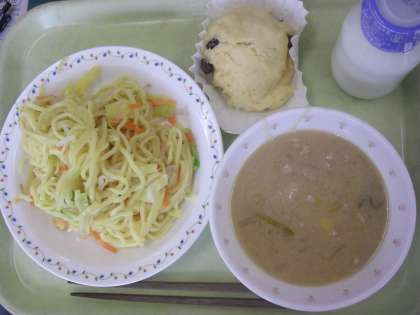 サッポロラーメン(つけ麺風) 牛乳 おから蒸しパン