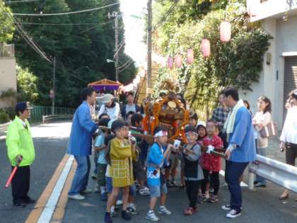 今日、上野毛の稲荷神社から子どもみこしや大人みこしで渡御が行われました。子どもみこしを担ぐ玉川小の子どもたちがたくさんいてとてもうれしかったです。さらに、今年は、この夏休みにカルチャースクールで1週間指導いただいたお囃子を山車の上で披露することができた記念すべき出来事がありました。3人の子どもたちは、夏の練習の成果をいかんなく発揮し、立派に太鼓をたたいていました。このような機会を与えて頂きました町会の皆様と上野毛お囃子連の方々に深く感謝申し上げます。