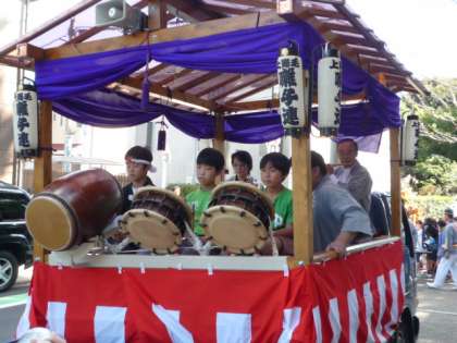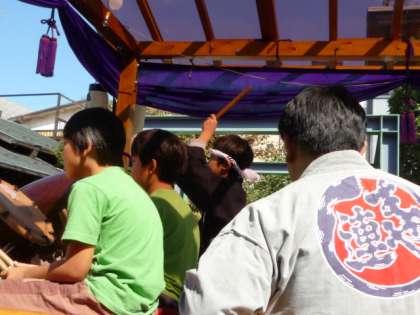 10/11 子どもたちが山車の上で、お囃子を披露!!