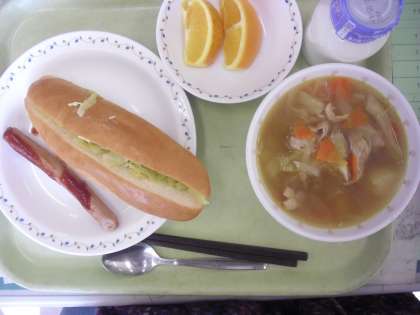 セルフウィンナーサンド 牛乳 白いんげん豆の田舎風スープ ネーブルオレンジ