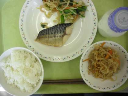 ご飯 牛乳 さばの塩焼き おひたし 切干大根の煮つけ