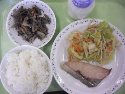 ご飯 牛乳 ぶりの照り焼き 野菜のごま和え 刻み昆布の五目煮