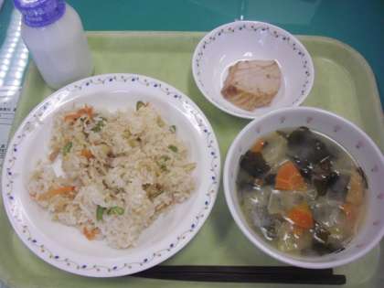 こぎつねご飯 牛乳 めかじきの生姜焼き 味噌汁
