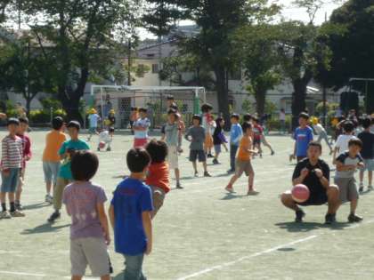 外遊びに絶好の天気の今日、校庭で、たくさんの子どもたちが楽しそうに遊んでいました。先生たちも大勢子どもたちと一緒に遊んでいました。体育館付近では、6年生の女の子たちが大縄で遊んでいました。よく見ると、その中に、黄色い帽子をかぶった1年生の女の子も交じって遊んでいました。大縄の飛び方を優しく教えている光景でした。6年生のお姉さんたち、ありがとう! お天気以上に気持ちがさわやかに感じた瞬間でした。