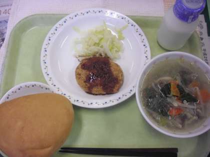 セルフサンドパン 牛乳 おから入りコロッケ ゆでキャベツ 野菜スープ