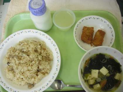 中華おこわ 牛乳 いかのカリント揚げ わかめスープ リンゴゼリー