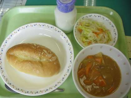 ガーリックトースト 牛乳 ポークシチュー キャベツサラダ