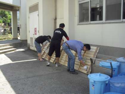 今年度の「玉小おやじの会」が始動しました。日ごろの腕前を発揮しようと、おやじの会オリジナルTシャツを着て颯爽とあつまって下さいました。さっそく1年生の傘立ての塗装と中庭のすのこの防食剤塗りです。チームワーク良く作業を進め、あっという間にきれいに仕上がりました。白く新しくなった傘立てに色とりどりの傘が入って、雨の日も楽しくなりそうです。ありがとうございました。