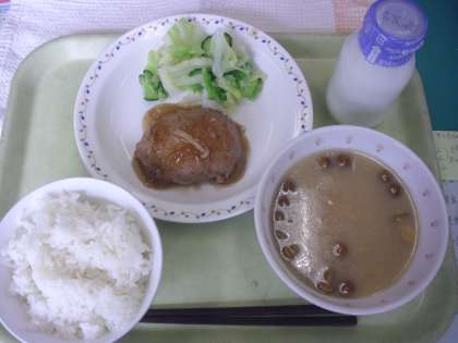 ごはん 牛乳 むろ鯵のハンバーグ ひと塩野菜 なめこの味噌汁