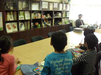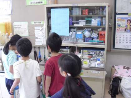 2年生1年生が学校探検をし、いろいろな教室へ行きました。