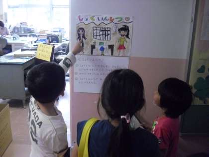 2年生は1年生のために、探検の約束を決めたり、ポスターを描いたり、たくさん準備をしました。案内することで、2年生も新たな発見があったようです。