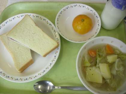 ブルーベリージャムサンド 牛乳 ポトフ 冷凍みかん