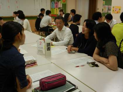 6日(金)に学校運営委員の方と職員の懇親会を開きました。毎年2回実施しており、今年度の第1回目を開きました。運営委員の方を講師としたグループディスカッション形式としました。運営委員の方の専門性を生かし「子どもと体力」「子どもと読書」「子どもと食」「子どもと進路」「子どもと環境」の5グループです。話が始まると45分間があっという間に過ぎてしまい、交流を深める良い機会となりました。引き続き、第3回の学校運営委員会開きました。先日お配りした『玉小スタンダード』は、運営委員会が作成し発行したものです。是非ご活用ください。